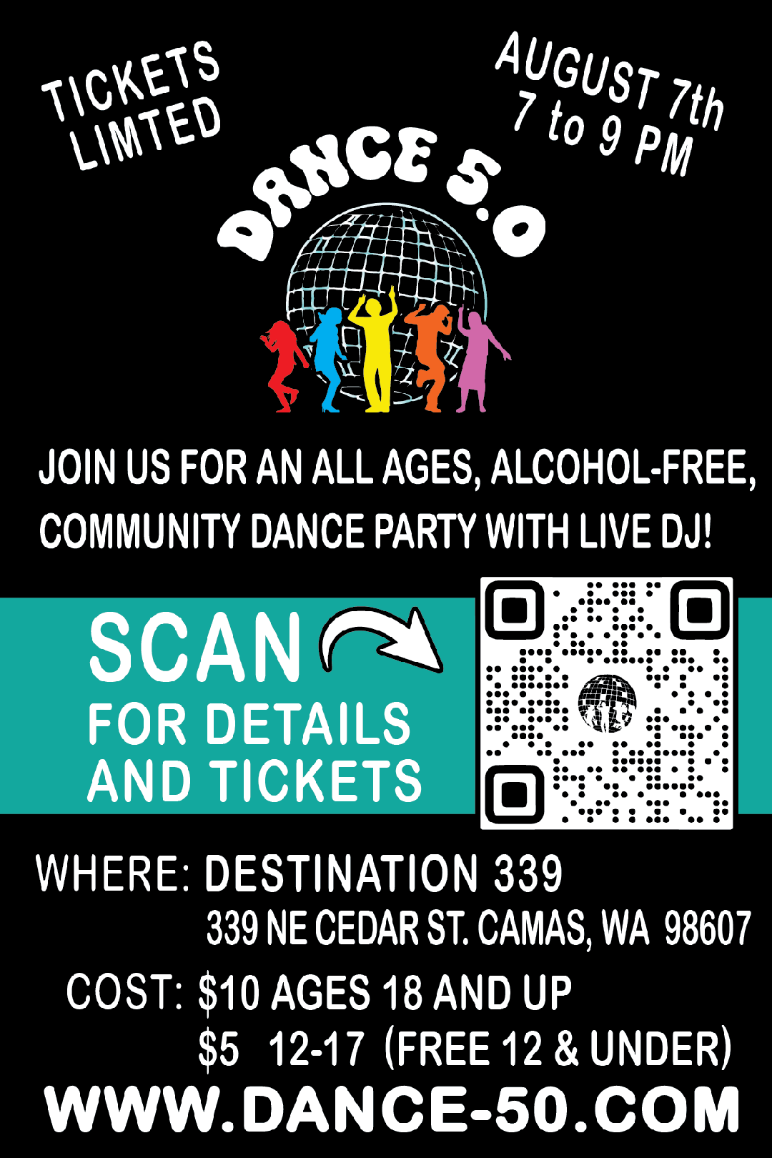 Dance 5.0 is an all ages, alcohol free, community dance with a live DJ held at Destination 399 from 7 to 9 p.m. Aug. 7.
