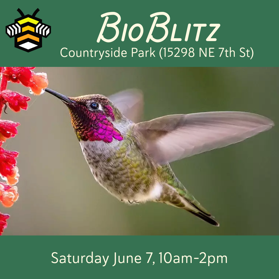 Join the BioBlitz at Countryside Park, 15204 N.E. Seventh St., Vancouver, from 10 a.m.-2 p.m. June 7. Volunteers will work together to document as many plants, animals and fungi as they can using the free iNaturalist app. Volunteers should bring smartphones and water. Learn more at vancouverbeeproject.org/events-2-1/bioblitz-at-countryside-park.