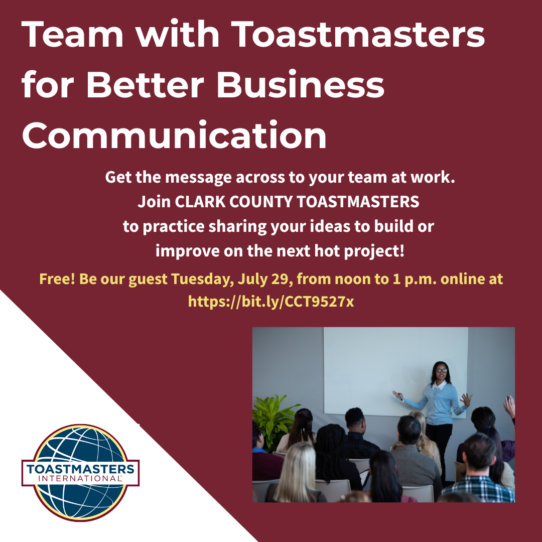 The Clark County Toastmasters will host an Open House starting at 12:30 p.m. July 29.