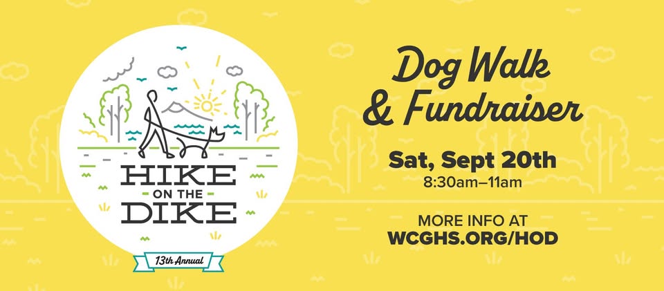 The Hike on the Dike fundraiser for the West Columbia Gorge Humane Society, 8:30-11 a.m. Sept. 20, features a beautiful walk along the Columbia River Dike Trail starting at the WCGHS Dog Shelter, 2675 Index St., Washougal; a complimentary espresso bar; dog agility course; live DJ; raffle opportunities; and vendors. Registration is $20; visit p2p.onecause.com/hod2025 to sign up and get more details.