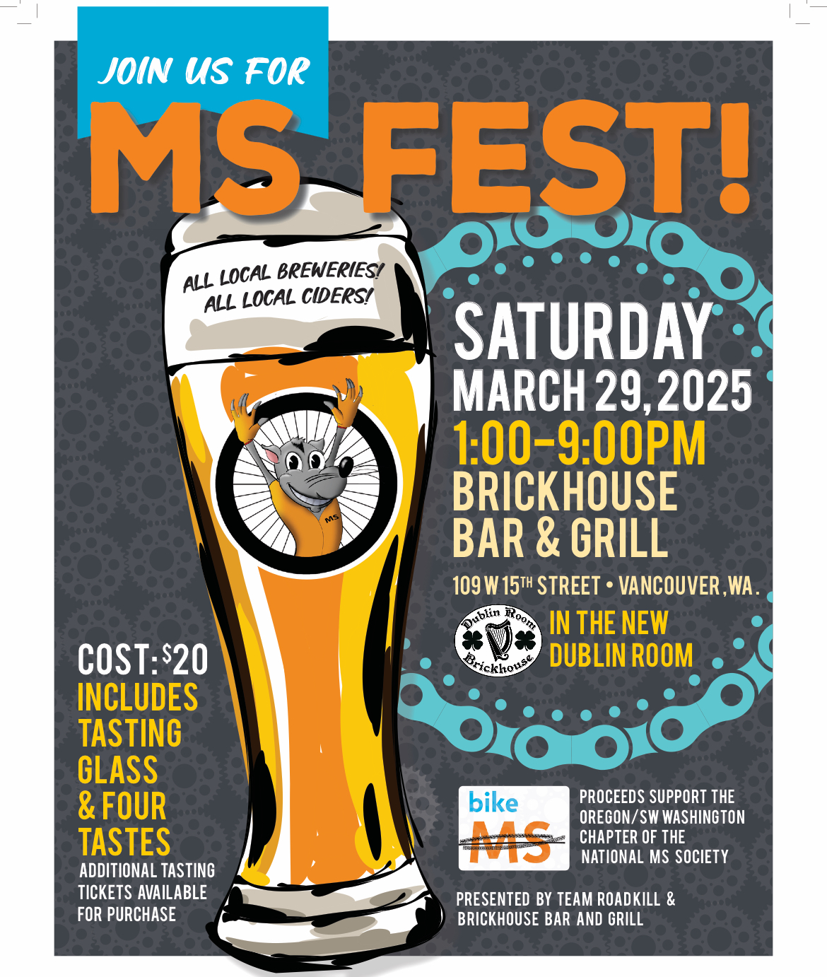 Brickhouse Bar and Grill will host MS Brewfest from 1 to 9 p.m. March 29 at 109 W. 15th St., Vancouver. The fundraising festival features craft beer and ciders from 13 local breweries. Admission is $20. All proceeds are donated to the National Multiple Sclerosis Society.