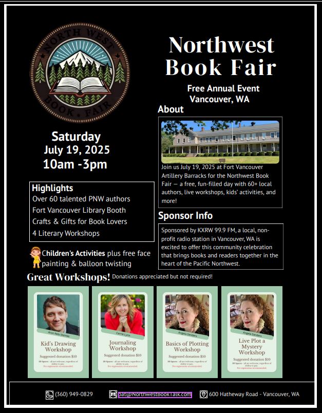 The Northwest Book Fair is 10 a.m.-3 p.m. July 19 at the Fort Vancouver Artillery Barracks, featuring 60 Pacific Northwest authors. Discover new books, attend live workshops and connect with writers of memoirs, mysteries, fantasy, history and children’s literature. Highlights include a pop-up tent village with authors and vendors, kids’ activities such as face painting and balloon art, workshops, raffle drawings and giveaways. Admission is free. Get details at northwestbookfair.com.