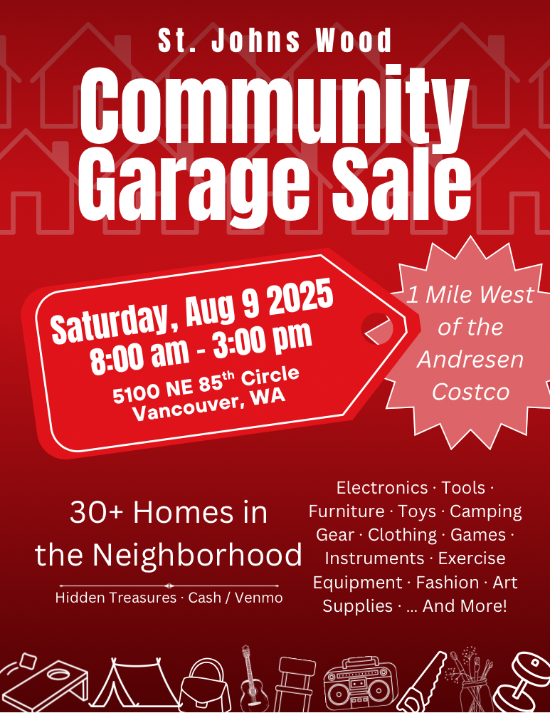 Some are cash-only, some will accept Venmo or other payment apps. This multi-family garage sale is 1 Day Only from 8 a.m. to 3 p.m. (some homes may open earlier or stay open later). Event is located about 1 mile west of the Andresen Costco off N.E. 88th. Use 5100 N.E. 85th Circle as a waypoint for GPS directions.