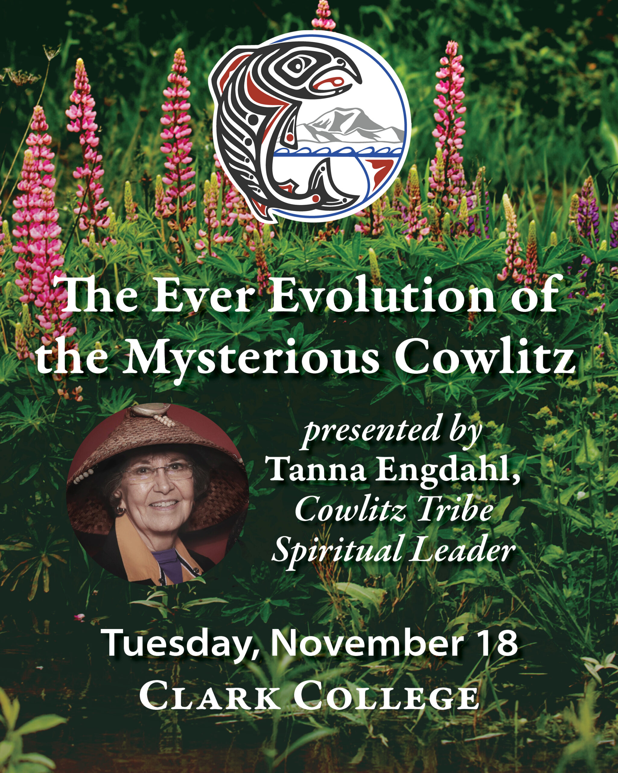 Clark College Gaiser Student Center 1933 Fort Vancouver Way, Vancouver, WA, United StatesClark College presents Tanna Engdahl, spiritual leader of the Cowlitz Indian Tribe, with a free public presentation, "The Ever Evolution of the Mysterious Cowlitz" from 1 to 3 p.m. Nov. 18 in the Gaiser Student Center on Clark's main campus at 1933 Fort Vancouver Way, Vancouver. Doors open at 12:30 p.m. Multi-lingual Cowlitz strongholds dotted Southwest […]