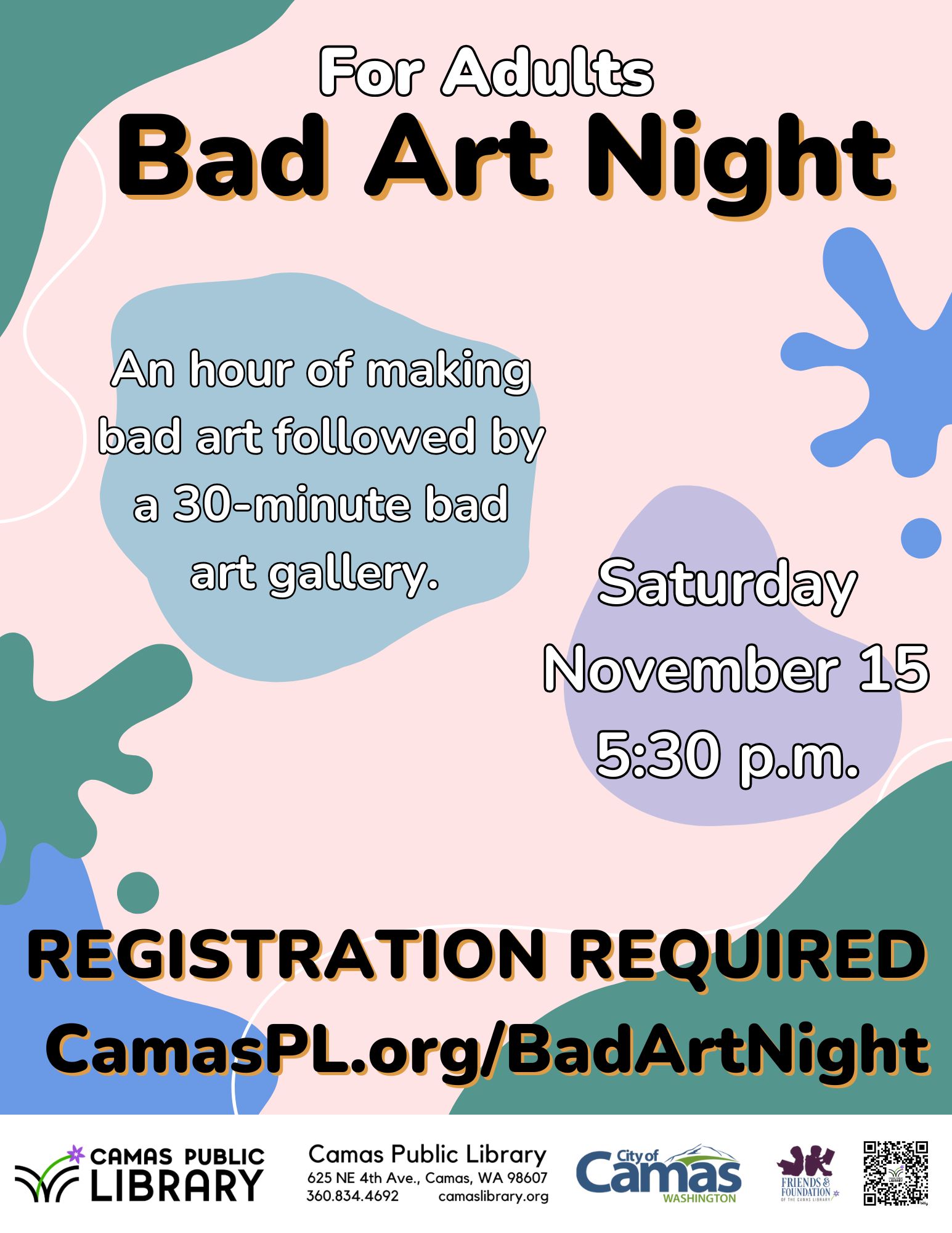 The Camas Public Library hosts Bad Art Night for adults from 5:30-7 p.m. Nov. 15. Enjoy an hour of creating the worst art you can imagine, followed by a 30-minute Bad Art Gallery, where attendees will view each other's work and vote for the worst. No one needs to be artistically inclined -- in fact, […]