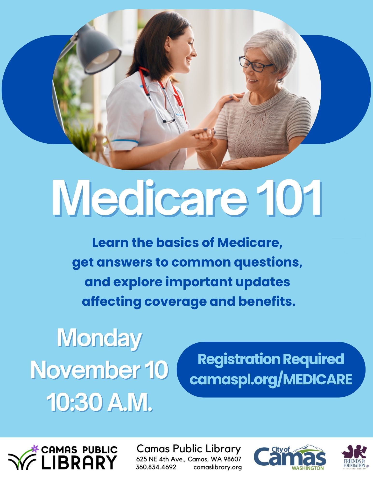 The Camas Public Library will offer a Medicare workshop from 10:30-11:30 a.m. Nov. 10. Attendees will learn about he latest changes to Medicare and senior health coverage. This presentation will cover the basics of Medicare, answer common questions and highlight important updates for 2025. This year brings significant changes to senior health plans and national […]