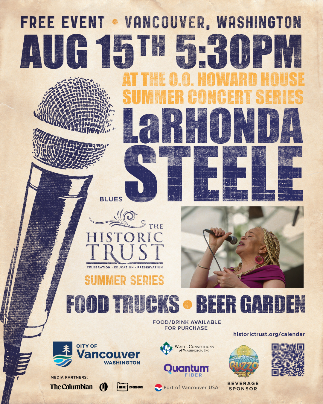 LaRhonda Steele will perform a free concert at OO Howard House starting at 5:30 p.m. Aug. 15. Often hailed as β€œThe First Lady of Portland Blues,” LaRhonda Steele is a celebrated gospel, blues, and soul singer whose powerful voice and deep-rooted musical heritage have made her a cornerstone of the Pacific Northwest music scene. Born […]