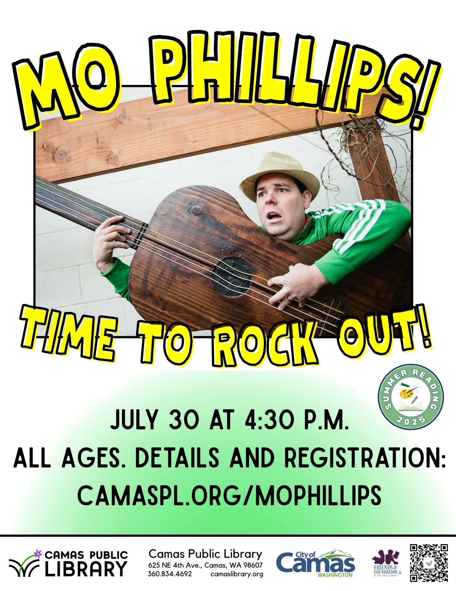 The Camas Public Library will offer an afternoon with comedian, singer, and songwriter extraordinaire, Mo Phillips on July 30 from 4:30 to 5:30 p.m. Mo Phillips is a teaching artist and a fun time maker in Portland, Oregon. He writes and records songs, makes oddball videos, produces choose-your-own-adventure musicals, all in Mo-Fi. Mo-Fi is a […]