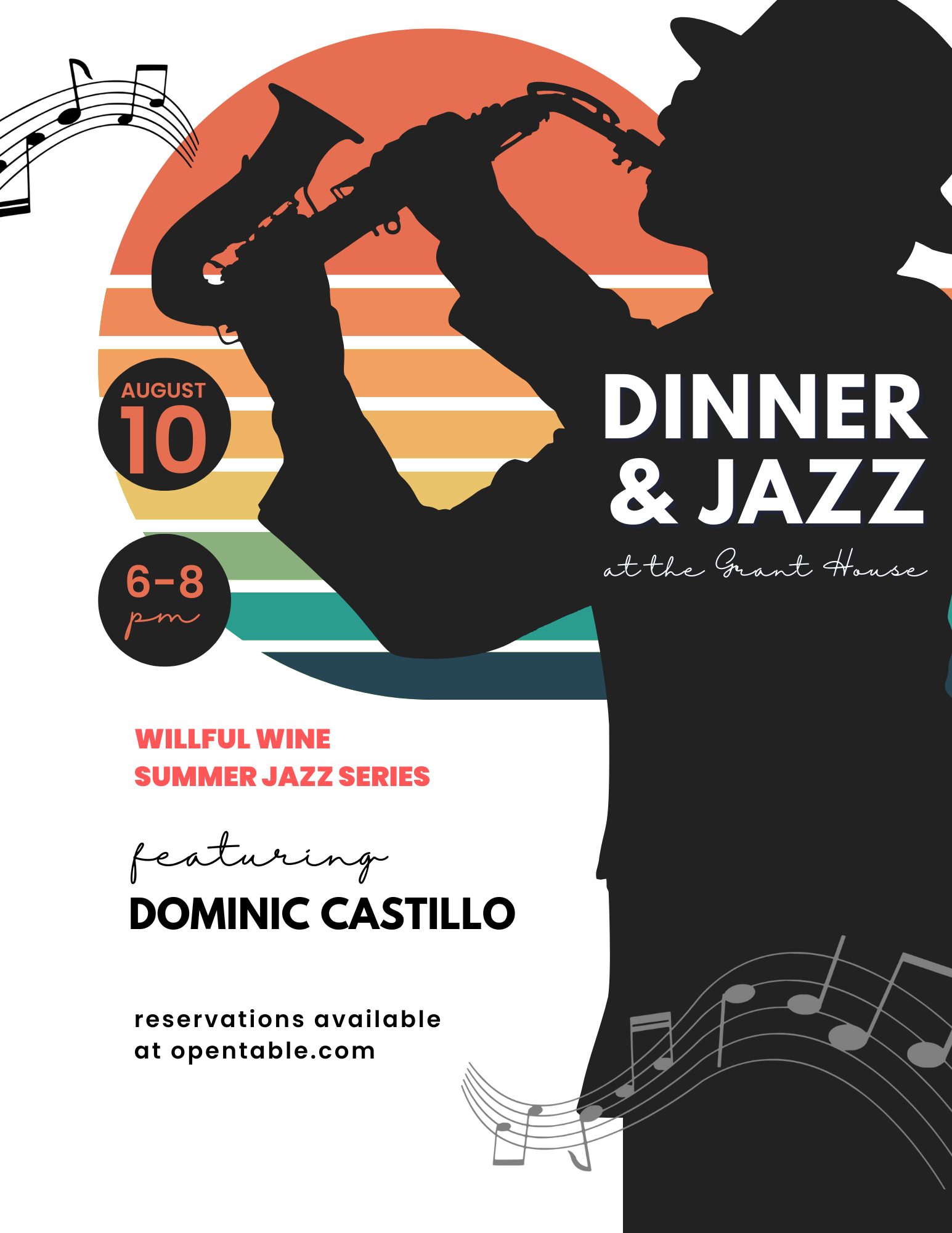 Velvet voiced crooner Dominic Castillo joins Brent Follis and Friends for a fabulous evening of live jazz on the lawn at The Grant House on Aug. 10. Dinner reservations from 4.45 p.m. Music from 6 to 8 p.m. Attendees are encouraged to book early as seating is limited! $20 cover charge goes to the band.