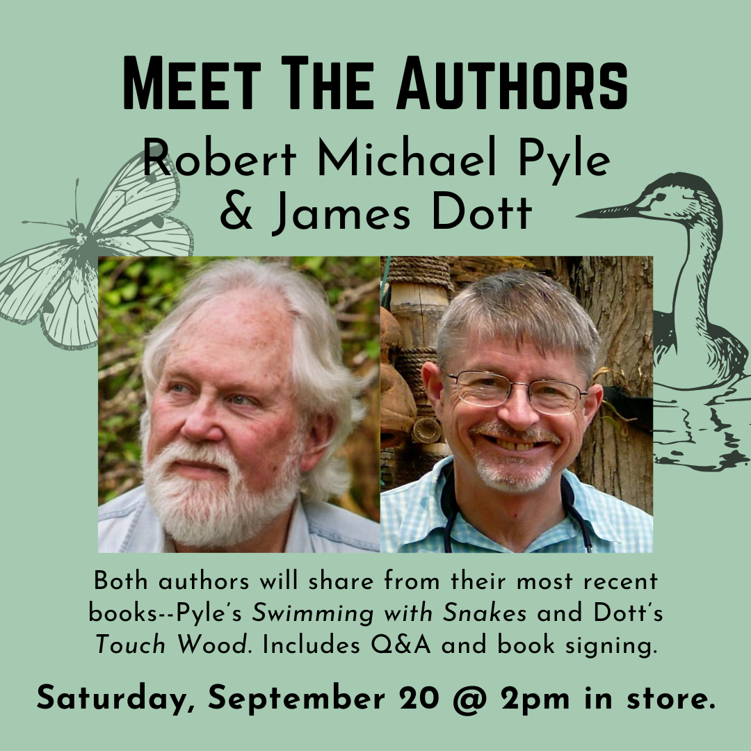 Vintage Books will host an author event at 2 p.m. Sept. 20 featuring an afternoon of poetry and prose with Robert Michael Pyle and James Dott. Both will share from their most recent books: Pyle’s "Swimming with Snakes" and Dott’s "Touch Wood." The event includes a Q&A and book signing. Pyle is author of "Where […]