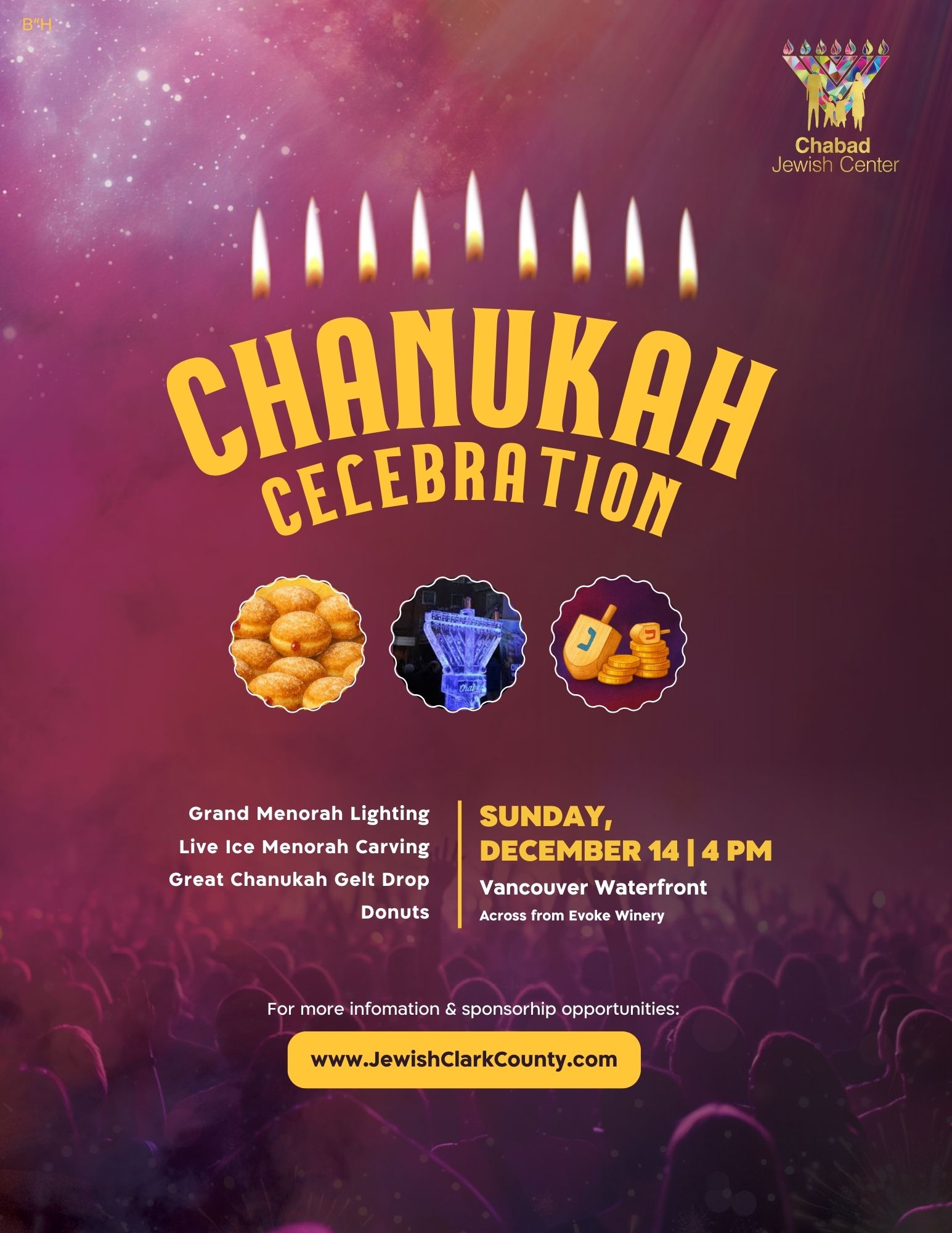 Dec 14 4:00 pm - 6:00 pm Grand Menorah Lighting and Community Chanukah Celebration Vancouver Waterfront Park 695 Waterfront Way, Vancouver Event Details Get Directions