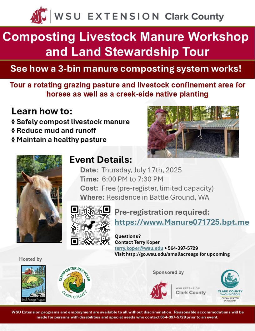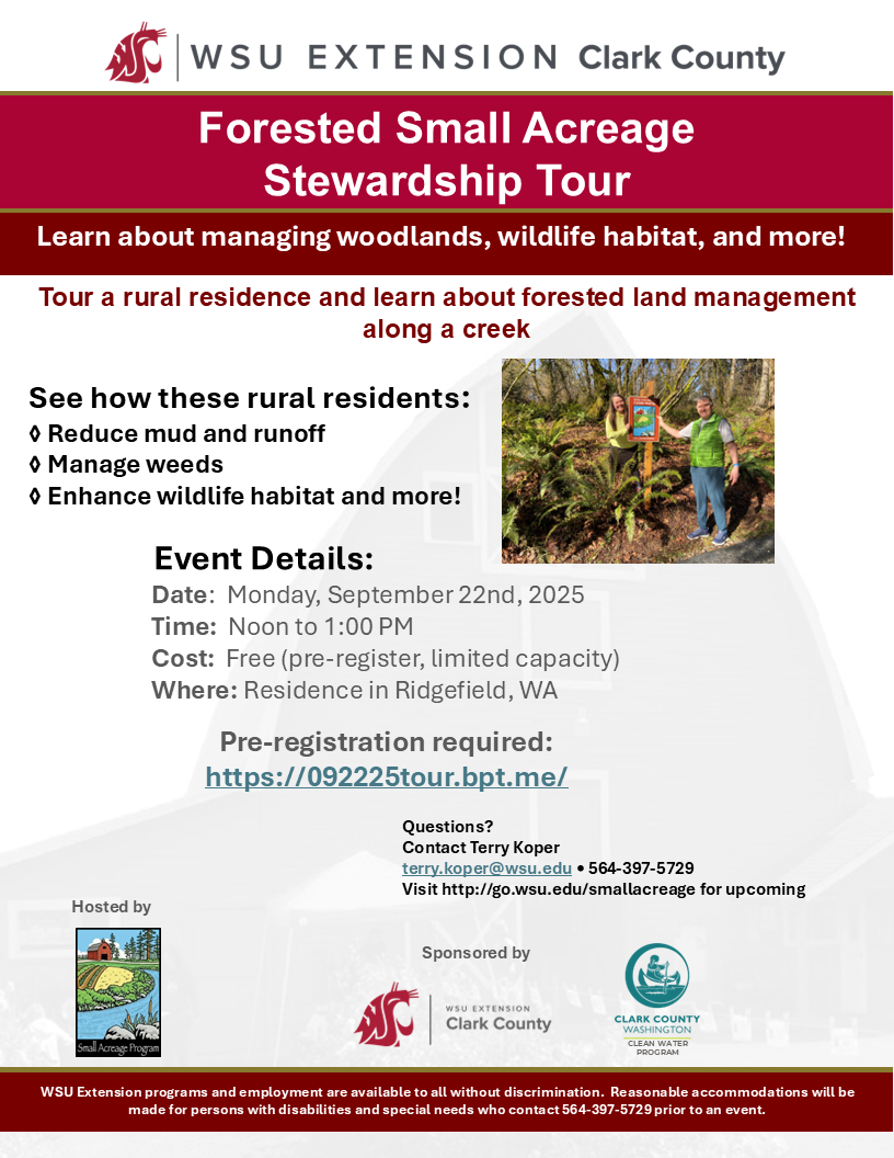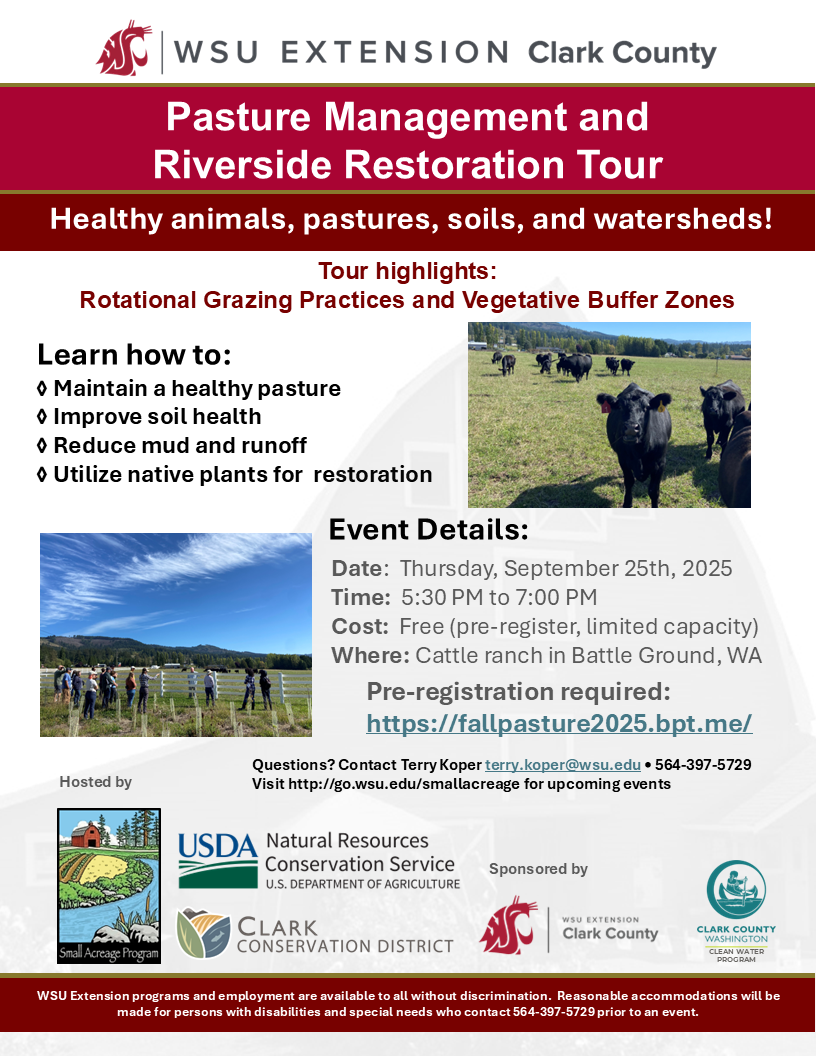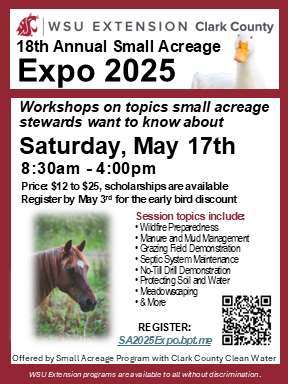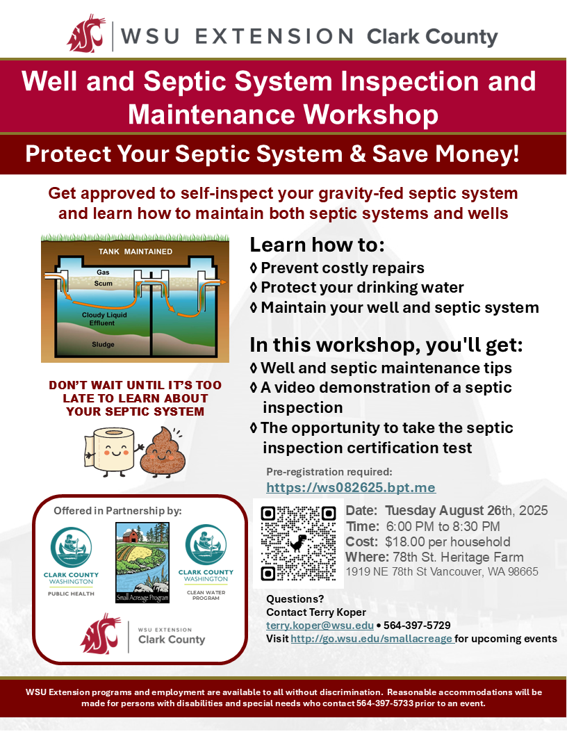 78th Street Heritage Farm 1919 NE 78th St, Vancouver, United StatesTake a Well and Septic System Maintenance and Septic Self-Inspection Certification Class from 6 to 8:30 p.m. Feb. 28 at the 78th Street Heritage Farm, N.E. 78th St. and N.E. 19th Court, Hazel Dell. The cost is $17.85 per household. Register at and find more details visit ws022824.eventbrite.com or email terry.koper@wsu.edu. The workshop is taught […]