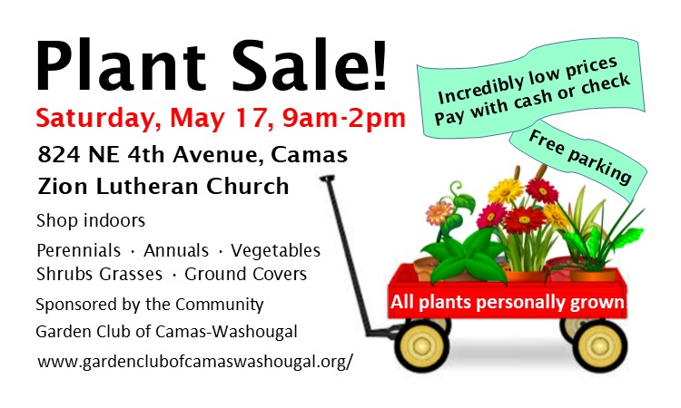 Zion Lutheran Church 824 NE 4th Avenue, Camas, United StatesThe Community Garden Club of Camas-Washougal is hosting a plant sale from 9 a.m. to 2 p.m. May 18 at Zion Lutheran Church, 824 N.E. Fourth Ave., Camas. Shoppers will find plants grown by garden club members at low prices. Find perennials, annuals, vegetables, shrubs, grasses and ground covers. Payment is by cash or check. […]