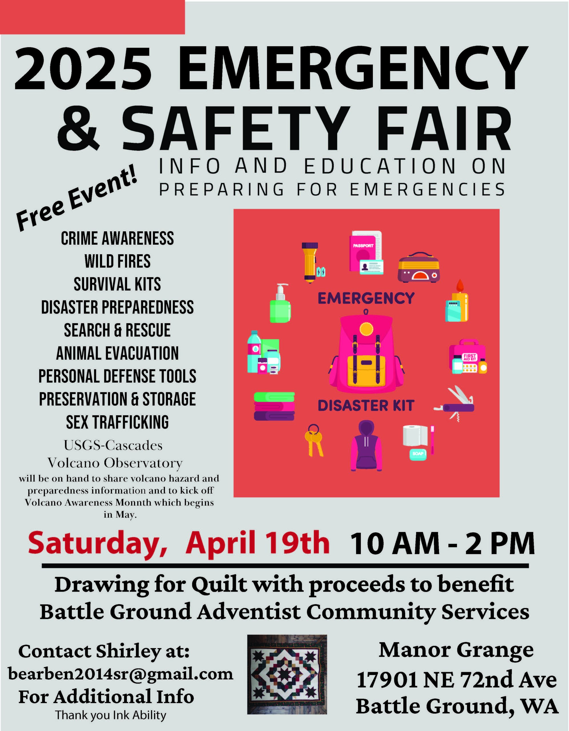 Manor Grange 17901 NE 72nd Ave, Battle Ground, United StatesThe Emergency Preparedness and Safety Fair is 10 a.m. to 2 p.m. April 19 at Manor Grange, 17901 N.E. 72nd Ave., Vancouver. The US Geological Survey-Cascades Volcano Observatory will be on hand to share volcano hazard and preparedness information, kicking off Volcano Awareness Month in May and marking the 45th anniversary of the Mount St. […]